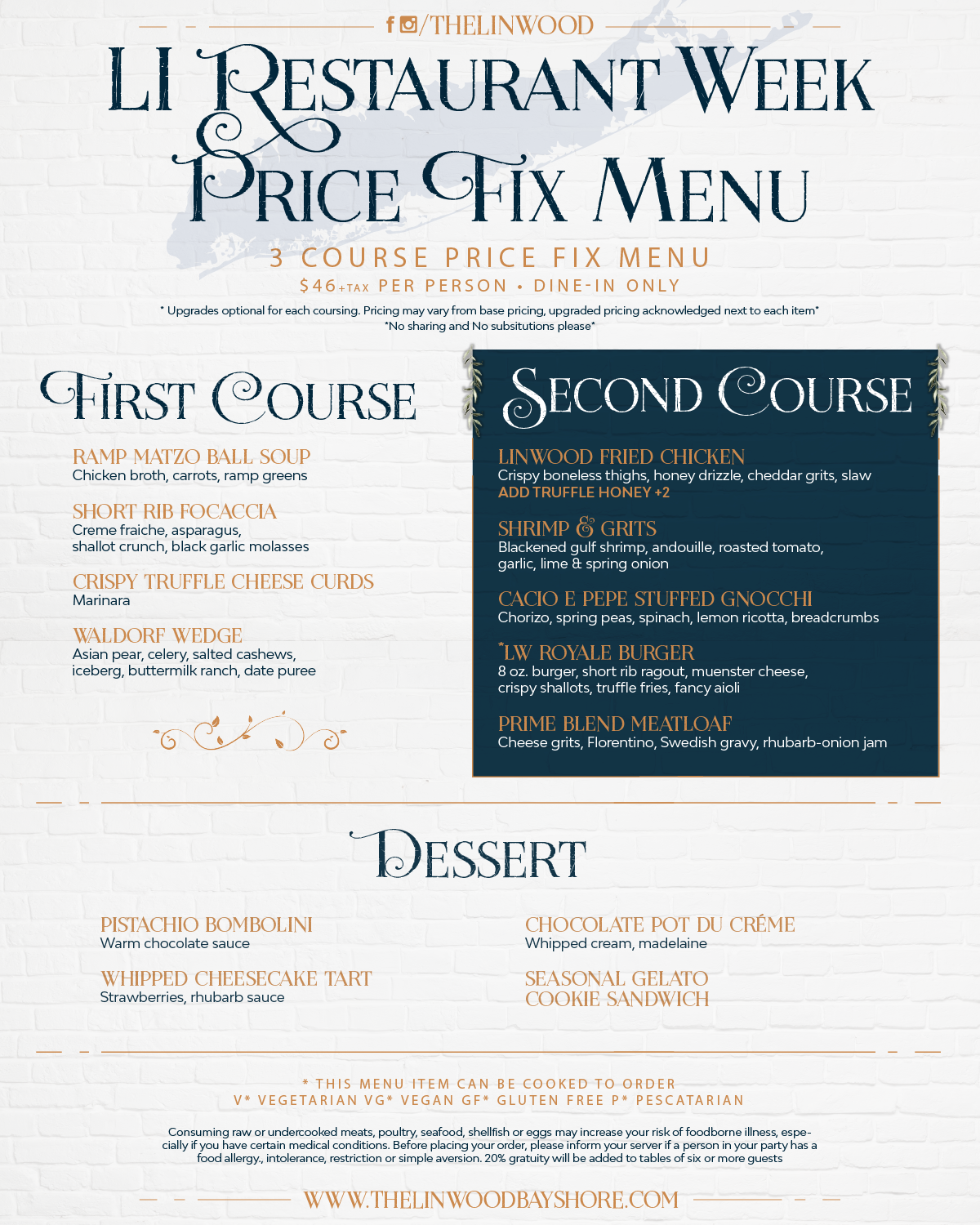 Join us for Long Island Restaurant Week Tuesday, April 9th through Saturday, April 13th three course price fix menu for $46!
